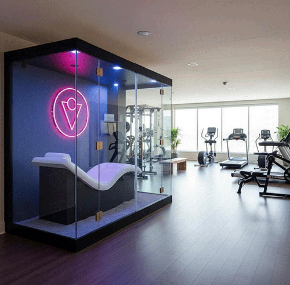 The Mv Salt Lounge creates a luxury halotherapy experience for groups of four to five users at once. Spacious and inviting, it combines the healing power of therapeutic-grade salt with a relaxing, spa-like atmosphere.